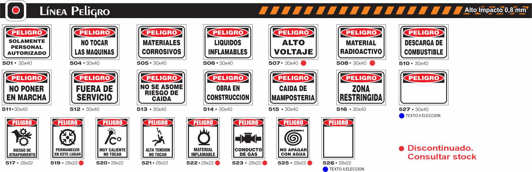 Impresión serigráfica de pictogramas y leyendas en colores normalizados Iram. Las medidas disponibles son las que figuran al pie de cada imágen.
